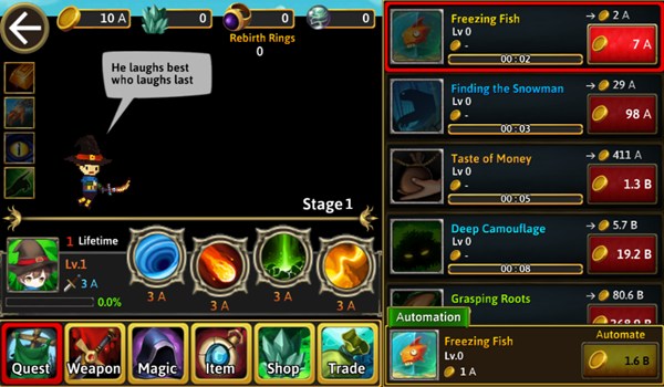 ซึ่งความสามารถต่าง ๆ ของเจ้าชายสามารถอัพเกรดได้ด้วยการใช้เงิน แล้วเจ้าเงินนี่หาจากไหนล่ะ? ไม่ยากเลยก็แค่กดที่ภารกิจในแถบด้านขวามือก็จะขึ้นตารางชื่อเควสมา กดเรียนโลดดด เพราะแต่ละอันนี่คือเงินทั้งนั้น เควสแรกไม่ต้องกดเยอะเก็บไว้กดเลเวลสูงที่เควสสามและสี ซึ่งเควสจะกดได้เรื่อย ๆ เหมือนปั้มเงินนั่นแหละ