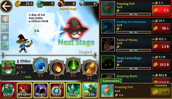 ซึ่งจุดที่เพื่อน ๆ จะต้องสนใจก็คือการสาดสกิลและกดภารกิจ ความสนุกอยู่ที่ทุกอย่างต้องทำอย่างสอดคล้องกันทำไปเรื่อย ๆ ต่อเนื่องจนไม่สามารถพักมือได้ รูปแบบการต่อสู้จะเป็นแบบออโต้ ที่มอนสเตอร์เดินหน้าเข้าหน้าเรื่อย ๆ ตัวละครของผู้เล่นที่เป็นเจ้าชายจะเป็นฝ่ายป้องกัน หากไม่ได้ใช้สกิลก็จะเป็นการฟันปกติธรรมดา