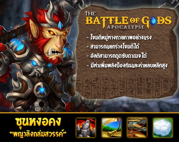 The Battle of Gods ระเบิดความมันส์ต้อนรับ “ซุน หงอ คง” เทพที่มีชื่อเสียงที่สุดจากประเทศจีน รวดเร็วและแข็งแกร่ง สาดสกิลสุดป่วน พลองสวรรค์ของเขาจะช่วยให้เข้าถึงฝ่ายตรงข้ามได้ง่ายขึ้น ถือเป็นเทพที่ครบเครื่องมากๆควรค่าจัดลงทีม!! พร้อมเปิดเซิฟใหม่ “Doros” กิจกรรมเพียบ! เชิญสาวกหน้าใหม่หรือใครที่อยากย้ายเซิร์ฟมาลุยกันได้เลย เลเวลไม่ตามใครแน่นอน !