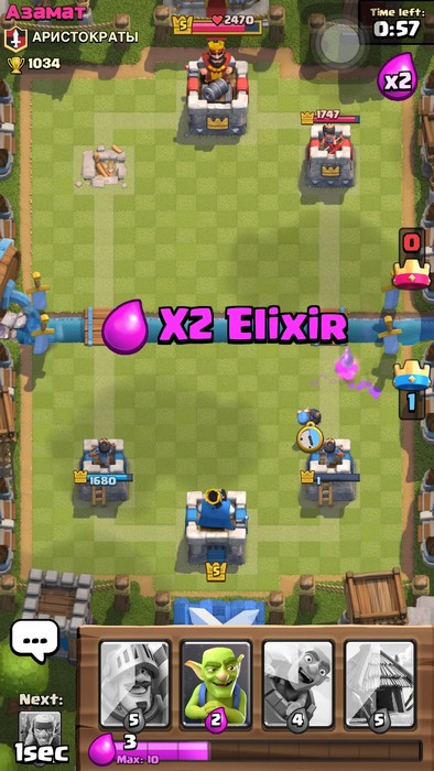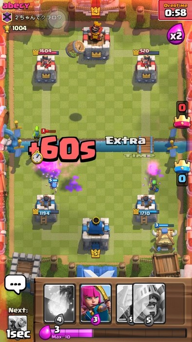 เราจะมีการ์ดให้เลือกก่อน 4 แบบ โดยสุ่มมาจากการ์ด 10 ใบที่เราเลือกใช้เอาไว้ ซึ่งแต่ละการ์ดจะมีค่าเรียกใช้งานไม่เท่ากันโดยแต้มของ Elixir จะค่อยๆ ขึ้นมาตามเวลาในเกมนั้นเอง เมื่อเข้าสู่นาทีสุดท้ายแต้ม Elixir จะเพิ่มคูณสองให้อีกด้วย หากหมดเวลาเสมออยู่ 1-1 จะมีการต่อเวลาอีก 60 วินาทีเรียกว่าเป็นช่วงที่มันส์ที่สุดและลุ้นที่สุดของเกมก็ว่าได้ งัดกันออกมาหมดครับตัวบิน ตัวใหญ่ปล่อยกันเต็มที่