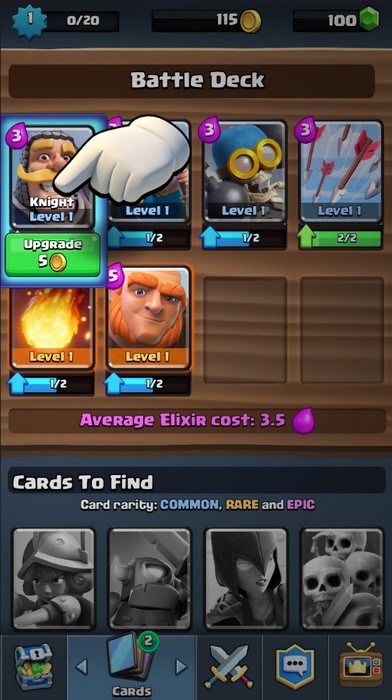 และเมื่อเปิดกล่องเราจะได้เงินและการ์ดต่างๆ มา หากสะสมครบจำนวนที่กำหนดจะสามารถอัพเกรดตัวละครนั้นๆ ได้ และเลเวลของตัวละครเราจะได้จากการอัพเกรดการด์นั้นเอง ทุกครั้งที่อัพเลเวลป้อมของเราจะได้พลังโจมตีและป้องกันเพิ่มขึ้นด้วย