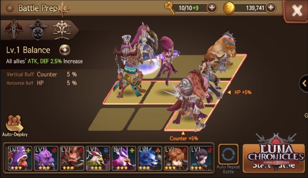 - สามารถจัดฟอร์มทีมเพื่อรับโบนัสคริติคอลได้ รวมถึงการฟอร์มทีมเพื่อเลือกสไตล์การต่อสู้ที่ถนัด