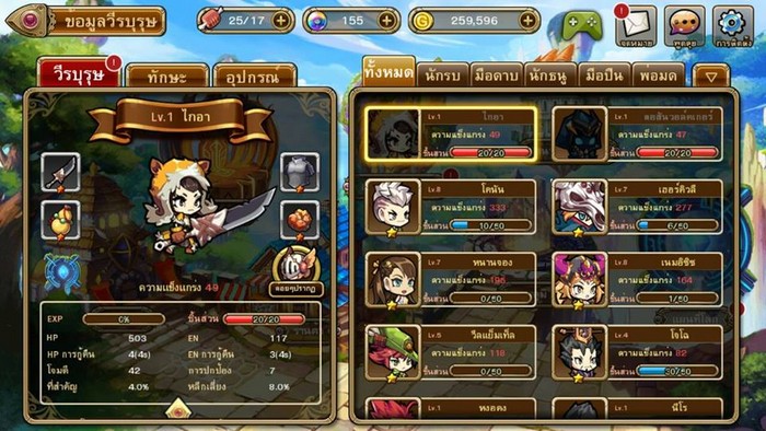 จิ๋วแต่แจ๋ว.. กว่า 40 ตัวละครที่สุดแสนจะน่ารัก น่าฟัด และเต็มไปด้วยความสามารถ แบ่งออกเป็น 5 สายอาชีพได้แก่ นักรบ มือดาบ นักธนู มือปืน และพ่อมด โดยแต่ละอาชีพก็จะใช้อาวุธที่แตกต่างกันออกไปและไม่สามารถใช้ร่วมกันได้ นอกจากนี้เรายังสามารถอัพสกิลต่างๆ เพื่อเพิ่มความสามารถให้กับฮีโร่ รวมถึงปรับเปลี่ยนชุดและอาวุธได้ด้วย