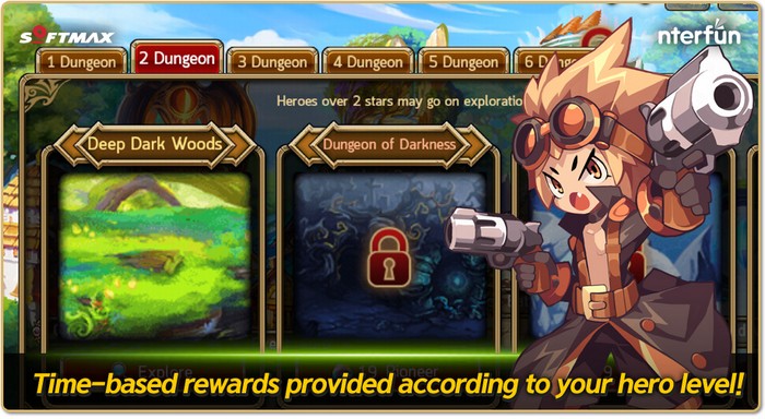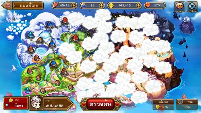 สุดยอดเบสิคแห่งการเก็บเวล และไว้ใช้ดรอปตัวฮีโร่ได้ด้วย โดยเราจะต้องผ่านด่านไปแต่ละด่านให้ได้ ซึ่งแต่ละด่านนั้นจะมีบอสให้เราต่อสู้ด้วย หากสามารถชนะได้ ก็มีโอกาสดรอปบอสตัวนั้นกลายมาเป็นฮีโร่ของเราแทน และนอกจากการต่อสู้ผ่านด่านทั่วไปแล้ว ในแผนที่โลกนี้เราจะสามารถไปปล้นเงินของผู้เล่นอื่นได้ด้วยการกดค้นหา ที่ปุ่มซ้ายล่าง และกดเข้าปล้น ซึ่งจะเจอกับทหารของผู้เล่นคนนั้นที่ตั้งเอาไว้ หากชนะก็จะได้เงินที่ปล้นมาทันที และอย่าลืมว่าเราก็ต้องไปตั้งทหารไว้ป้องกันเมืองไม่ให้คนอื่นมาปล้นได้เช่นกันนะ