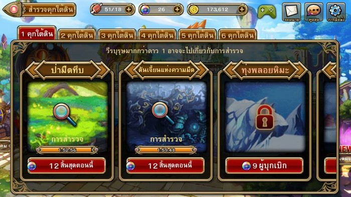 โหมดการสำรวจนี้ จะเป็นแค่การเลือกตัวละครตามแรงค์ของดาว เข้ามาสำรวจเพื่อดรอปไอเทมต่างๆ ซึ่งจะใช้เวลาอย่างต่ำเพียงแค่ 2 ชั่วโมงต่อการสำรวจ และจะต้องใช้ฮีโร่ที่มีดาวเท่ากัน 4 คนในการสำรวจ 1 ครั้งเท่านั้น
