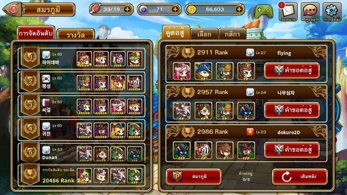 ในโหมด PVP นี้ เราจะต้องเลือกฮีโร่เข้ามาต่อสู้ 4 คน โดยสามารถ PVP ได้เพียง 5 ครั้งต่อวัน จากนั้นก็เลือกคู่ต่อสู้ได้เลย ในสมรภูมินี้จะมีการเก็บ Rank เพื่อจัดอันดับ และให้คะแนนอันดับสูงสุดอีกด้วย