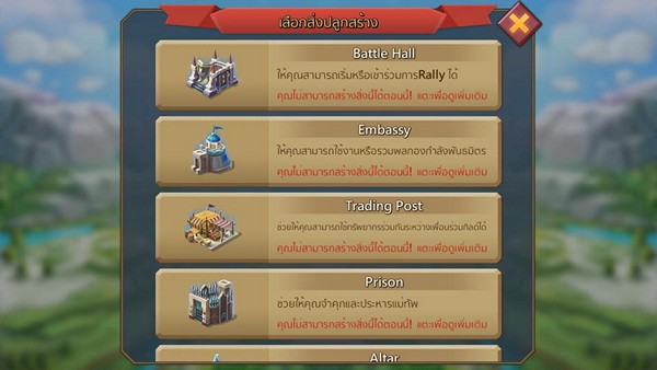 ระบบการสร้างเมือง เป็นะระบบแรกที่เข้ามาถึง เราต้องทำการปลูกสิ่งก่อสร้างต่างๆ สำหรับใช้ผลิตทรัพยากรหล่อเลี้ยงอาณาจักร อัพเกรดความสามารถสิ่งปลูกสร้าง สร้างความแข้งแกร่งให้ฐานทัพของเราอีกด้วย