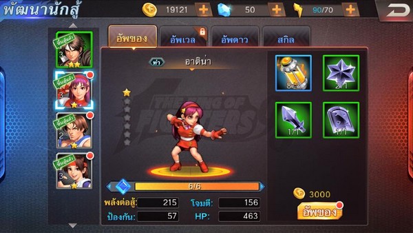 เราสามารถพัฒนาอัพเกรดตัวละครได้จากการอัพเลเวล อัพขั้นของ โดยใช้คัมภีร์ที่ได้จากการลงดันเจี้ยนมาอัพ ระดับดาวจากการสะสมวัตถุดิบ ระดับเหรียญและคัมภีร์ได้มาจากการสะสมวัสดุจากการฝึกฝน และการพัฒนานักสู้คือการอัพพลังจาก ของ เลเวล ดาว และ สกิล หมั่นอัพบ่อยๆ เพราะด่านดันเจี้ยนจะยากขึ้นเรื่อยๆ