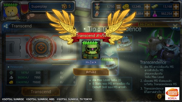 ความสนุกยกที่ 1 ระบบ Transcend System เอาใจขาโหดจัดเต็มความเทพให้กับ MS ตัวโปรด เป็นระบบที่เหล่าคอมมานเดอร์ทั้งหลายต่างเรียกร้องเข้ามา จะช่วยทำให้เพื่อนๆ สามารถเอา MS 2 ตัวที่เป็นแบบเดียวกัน (ดาวฟ้าและดาวส้ม) ที่มีเลเวลถึง 30 แล้ว มาผสมเข้าด้วยกัน เพื่อให้ได้ Transcend MS ดาวเขียวที่ควบเอาพลังความสามารถของ MS ตัวเดิมทั้ง 2 ตัว มาไว้ในตัวเดียวกัน (คิดดูว่าถ้าเอา MS 6 ดาวตัวเทพ 2 ตัวมารวมกันละก็ ฮึ่ม!!! รู้เรื่อง) รวมไปถึงจะเพิ่มเลเวลสูงสุดของ MS ตัวนั้น เป็นเลเวล 40 จะแข็งแกร่งขึ้นมากเลยทีเดียว