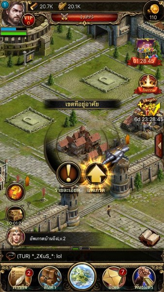 เริ่มเกมมาเราต้องทำการปลูกสร้างสิ่งก่อสร้างต่างๆ ก่อน เช่น บ้านของประชากร หอสูงไว้สังเกตการณ์ กำแพงเมือง ที่ฝึกทหาร คอกม้า ที่รักษา และพระราชวัง โดยเป็นการทำตามเควสไปก่อน ทั้งสร้างและอัพเดทเพื่อเป็นแหล่งผลิตทรัพยากร และสิ่งปกป้องอาณาจักรจากการรุนราน