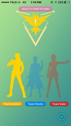 อย่างแรกเลยเลเวลตัวละครของเราจะต้องเลเวล 5 ขึ้นไปก่อน เพราะเราจะสามารถเลือกทีมได้เมื่อเลเวล 5 ขึ้นไป จะมี 3 ทีมสีให้เลือกได้แก่ แดง ฟ้า และสีเหลือง โดยเมื่อเลือกแล้วจะไม่สามารถเปลี่ยนได้อีก ลักษณะยิมยังคงเป็นเสาอยู่เหมือนเดิมแต่จะเป็นเสาใหญ่ๆ ที่มีโปเกมอนยืนอยู่บนเสานั้นเอง หากยังไม่ได้เลือกทีมเมื่อกดยิมครั้งแรกหลังเลเวล 5 จะได้เลือกทีมครับผม