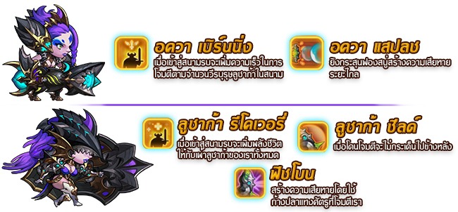 แหวกฝูงคลื่นเข้าสู่กองทัพภาคีผู้พิทักษ์สด ๆ ร้อน ๆ กับเผ่าพันธุ์ใหม่ที่มีชื่อเก๋ไก๋ว่า “ลูซาก้า” เผ่าพันธุ์นักรบแห่งท้องทะเล ซึ่งมีจุดเด่นที่น่าสนใจอย่างการโต้คลื่นเข้าสู่สนามรบ และการใช้พลังที่เกี่ยวกับน้ำ เราไปดูความสามารถแต่ละอาชีพของเผ่าลูซาก้ากันดีกว่า ว่าแต่ละตัวจะมีจุดเด่นและความสามารถเบื้องต้นอย่างไร