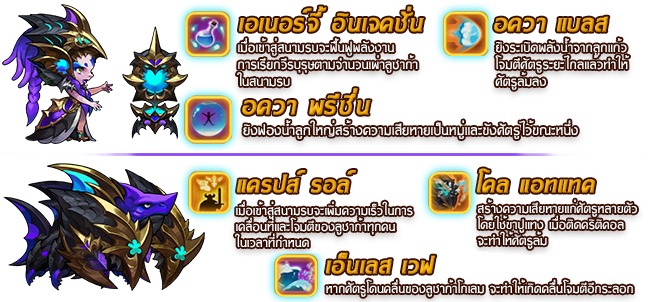 ลูซาก้าโกเลม ปูยักษ์แห่งท้องทะเล สร้างความเสียหายเป็นหมู่ด้วยขาอันทรงพลัง และเมื่อโจมตีติดคริติคอลจะทำให้ศัตรูล้มลงด้วย