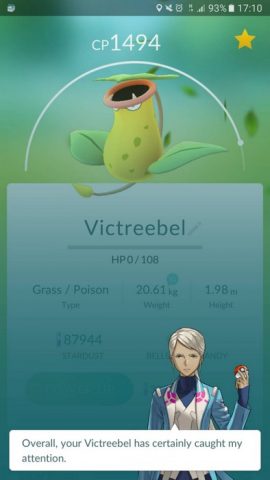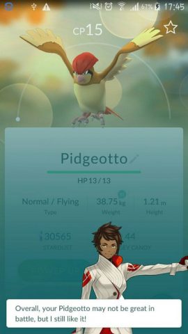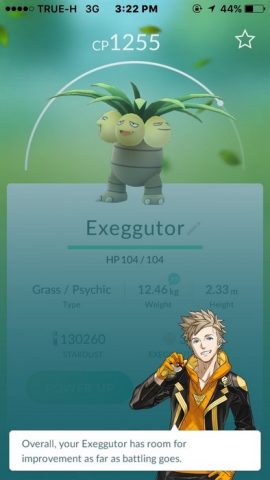 ในเวอร์ชั่นล่าสุด เมื่อเรากดที่โปเกมอนตัวใดก็ตามจะมีเมนูใหม่เพิ่มมา เมื่อกดแล้วหัวหน้ายิมที่เราสังกัดจะออกมาประเมินให้ว่าโปเกมอนตัวนั้นๆมีค่า IV ประมาณเท่าไหร่และมีค่าสเตตัสอะไรที่เด่นอีกบ้าง แต่หัวหน้าเราจะไม่บอกตัวเลข IV ตรงๆ แต่จะมีประโยคพูดซ้ำๆ อยู่ 4 ประโยดโดยแต่ละประโยคจะบอกใบ้ว่าค่า ค่า IV เท่าไหร่