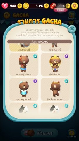และเรายังหาตัวละครอื่นได้จากระบบกาชา ซึ่งมีให้เปิดทั้งแบบเงินในเกมและเพชรในเกม ซึ่งถ้าเราได้ตัวละครซ้ำก็จะเป็นการอัพเกรดตัวละครเดิม ทำให้สเตตัสดีขึ้นไปอีกขั้นโดยสูงสุดที่ 5 ดาวนั้นเอง อย่าดูถูกตัวที่เป็นระดับธรรมดานะครับ เพราะสกิลการพวกเก็บเชอรี่หรือเหรียญแล้วได้แต้มเพิ่มนี้ดีกว่าแรร์บางตัวอีกครับ