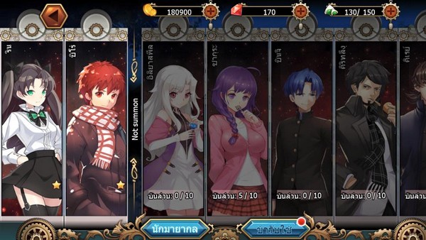 จุดเด่นของ Fate อยู่ที่เนื้อเรื่องสุดเข้มข้น ออกจะซับซ้อนไปบ้างสำหรับคนที่ไม่เคยดูการ์ตูนเรื่องนี้มาก่อน จะเป็นการย้อนเวลาไปในช่วงต่างๆ ที่เกิดสงครามจอกศักดิ์สิทธิ์ ตัวละครในเกมนี้ที่เรียกกันว่า Servant (ข้ารับใช้) เรียกว่าขนกันมาเยอะมาก มีหลากหลายสายอาชีพตามในการ์ตูนได้แก่ Saber , Archer , Lancer , Caster , Assassin , Rider , Berserker และ Shielder วัดความแกร่งตามดาวตั้งแต่ 1-5 ใช้การเปิดสุ่มเอา