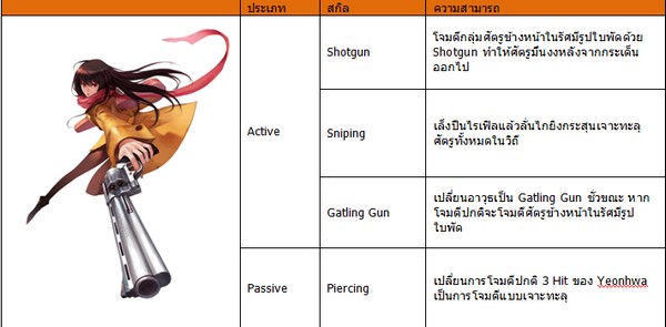 Yeonhwa เป็น Master สาย Striker มีความสามารถดังนี้
