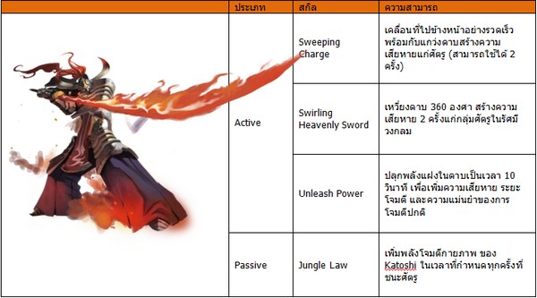 Katoshi เป็น Master สาย Striker มีความสามารถดังนี้