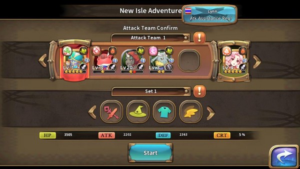หลังจากนั้นจะเข้าสู่การจัดทีม ที่เราสามารถอัญเชิญมอนสเตอร์หรือดรอปมาได้จากในเกมมาจัดทีมได้สูงสุด 6 ตัวจากมอนสเตอร์กว่า 350 ตัว เข้าผจญภัยตามแผนที่ตามเกาะต่างๆ แต่ก็ต้องสร้างค่ายกลไว้ป้องกันเกาะของตัวเองด้วยล่ะ