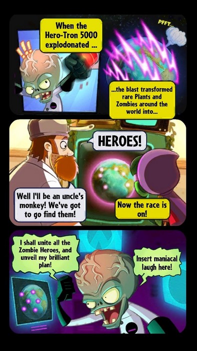 จุดเด่นของฝ่ายต้นไม้คือมีต้นไม้ที่มีเลือดเยอะกว่าซอมบี้ และมีตระกูลถั่วที่เอามาบังด้านหน้าต้นไม้อื่นๆได้ ในขณะที่ฝั่งซอมบี้นั้นมีประเภทสั่งฆ่าต้นไม้ที่มีดาเมจเกิน 5 หรือทำดาเมจใส่ต้นไม้ทั้งหมดที่อยู่บนพื้นดินได้และที่ดีที่สุดคือมีโอกาสใข้ Trick ก่อนเริ่มเทิรน์ และมีบัฟเพิ่มดาเมจได้เยอะกว่า และยังมีท่าพิเศษของฮีโร่แต่ละตัวที่แตกต่างกันออกไปอีกด้วยโดยเราจะปลดล๊อกฮีโร่ใหม่ๆได้ในซองการ์ด และได้การ์ดใหม่ๆเช่นเดียวกัน