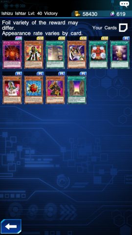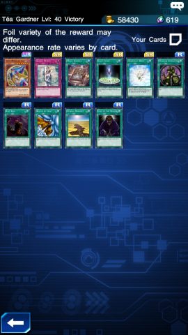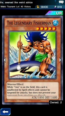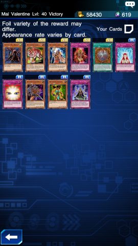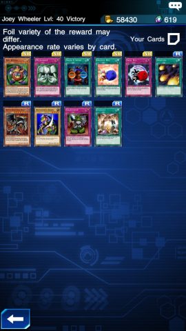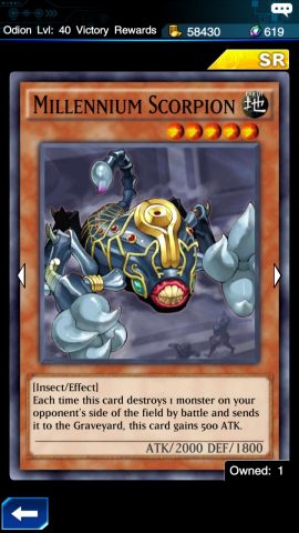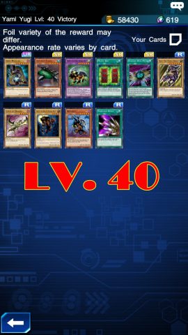 สำหรับการ์ดที่น่าเก็บเป็นอันดับแรกก็คือการ์ดแมงป่อง (Millennium Scorpion) เพราะ สามารถนำไปใช้ฟาร์มแต้มได้เป็นอย่างดี นอกจากนี้ยังมีอีกหนึ่งตัวละครก็คือ เพกาซัส ที่ออกมาพร้อม Event Toon World แต่ด้วยปัญหาบางประการจึงโดนเลื่อนออกไปก่อน (ไรท์เตอร์ดันเซฟภาพไม่ทัน ฮ่า ฮ่า) แต่ก็มีการ์ดที่ได้จาก LV 40 น่าสนใจก็คือ Toon World และการ์ดการ์ตูนทั้งหลายที่สามารถโจมตี LP โดยตรงได้ โดยการเข้าร่วมกิจกรรม Toon World ก็คือสู้กับคนทั่วไปเพื่อเก็บ สตาร์ชิพ แล้วนำไปสู้กับเพกาซัสเพื่อนำแต้มไปแลกของรางวัล ซึ่งหนึ่งในของรางวัลก็จะได้ตัวละครเพกาซัสด้วยนั่นเอง