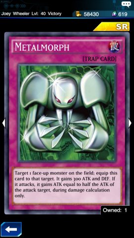 การ์ดที่น่าสนใจ : จอมเวทย์กาลเวลา (เลือกหัวหรือก้อย หากทายถูกทำลายมอนสเตอร์ทั้งหมดของศัตรู ,หากทายผิดทำลายมอนสเตอร์ฝั่งเราทั้งหมดและลด LP ตาม Atk ของมอนสเตอร์ฝ่ายเราที่ถูกทำลาย) และ Metalmorph (เมื่อสวมการ์ดนี้ Atk/Def +300 หากโจมตีจะ +Atk ครึ่งนึงของศัตรูที่กำลังปะทะด้วย)