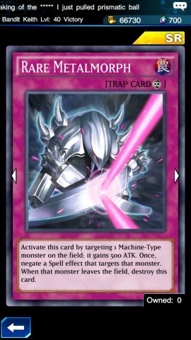 การ์ดที่น่าสนใจ : Barrel Dragon (ใช้ได้ 1 ครั้งต่อเทริน ,เลือกมอนสเตอร์ 1 ตัวของศัตรู ทอยเหรียญ 3 ครั้ง ถ้าถูก 2 ใน 3 ทำลายตัวนั้น) และ Rare Metalmorph (ใส่ให้กับเผ่าเครื่องจักร +atk 500 และเวทย์มนต์ไม่มีผลกับตัวนี้)