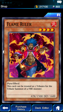 การ์ดใบนี้สามารถแทนมอนสเตอร์สังเวยสำหรับมอนสเตอร์ธาตุไฟได้ 2 ตัว
