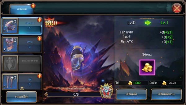 การอัพความสามารถของตัวละครมีหลายรูปแบบ ทั้งสวมใส่อุปกรณ์และเครื่องแต่งกาย ที่ส่งผลต่อรูปลักษณ์ของตัวละครด้วย การอัพเกรดสกิล เพิ่มเลเวลอาวุธและชุดเกราะ ตีบวกอุปกรณ์และชุดเกราะเพื่อเพิ่มค่าพลังโจมตีและทักษะพิเศษ หรือจะติดดาวให้อาวุธ ให้พลังเทพๆ ไปเลยก็ได้