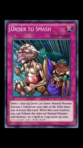 เลือกมอนสเตอร์ LV2 หรือต่ำกว่า(ยกเว้นโทเคน)บนสนามฝั่งคุณ เมื่อคุณใช้การ์ดนี้และการ์ดนี้ทำงาน คุณสามารถสังเวยมอนสเตอร์ปกติที่เลือกไว้ และทำลายเวทย์หรือกับดัก 1-2 ใบที่อยู่บนสนามของคู่ต่อสู้ได้