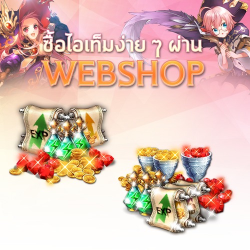 นอกจากนั้นทางเรายังได้เปิด Web Shop เป็นทางเลือกในการเติมเงินแบบใหม่ ผ่านช่องทางต่างๆ เพิ่มมากขึ้น เพื่อให้ผู้เล่นสนุกสนานกับการเล่นได้ง่ายยิ่งกว่าเดิม ด้วยการ Login id ผ่านทาง Web Shop แล้วเติมเงินผ่านช่องทางที่มีให้เลือก เพียงเท่านี้ก็สามารถเลือกซื้อไอเทมกันได้แบบทันใจเลยจ้า