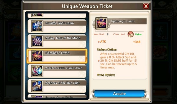 – ผู้เล่นสามารถซื้อบัตรเลือกอาวุธเฉพาะ T10 ของฮีโร่ได้ (ยกเว้นอาวุธของฮีโร่ตัวใหม่) โดยการใช้แต้มคะแนนสะสม ในราคาใบละ 4,000 คะแนน