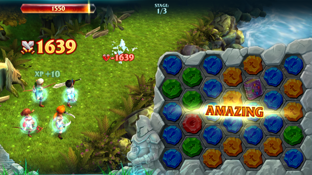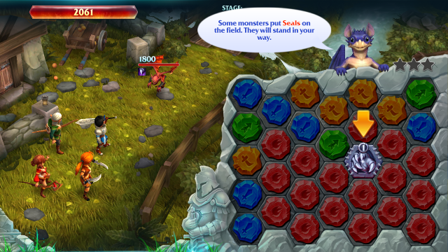 ตัวละครเราจะมีทั้งหมด 4 ธาตุ ซึ่งได้แก่ แดง น้ำเงิน เขียว ส้ม โดยวิธีโจมตีจะต้องลากหินเวทย์ที่สีเหมือนกัน 3 สี แล้วตัวละครประจำธาตุนั้นๆจะโจมตีออกมาเอง