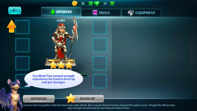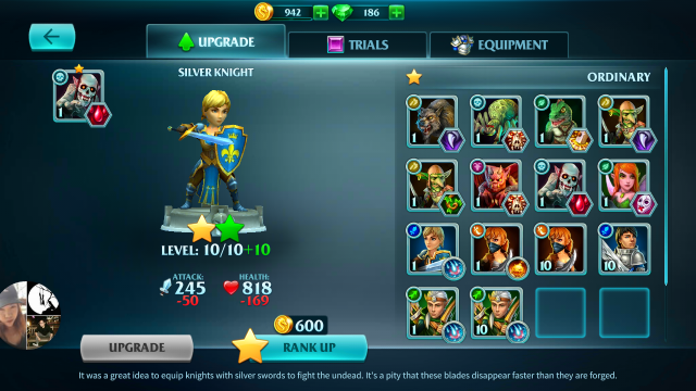 เราสามารถนำยูนิตที่ไม่ใช้แล้วมาเพิ่ม LV ให้ตัวละครเราได้ และเมื่อ LV ตัวละครเต็มแล้วก็สามารถอัพ Rank ได้โดยการนำยูนิตระดับเดียวกัน มาอัพเกรด ก็จะได้ยูนิตเดิมแต่ Rank (ดาว) เพิ่มขึ้น