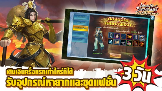 เติมเงินครั้งแรกรับอุปกรณ์หายากและชุดแฟชั่น 3วัน