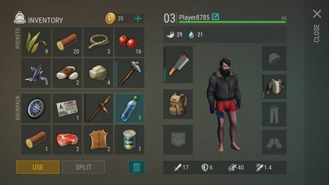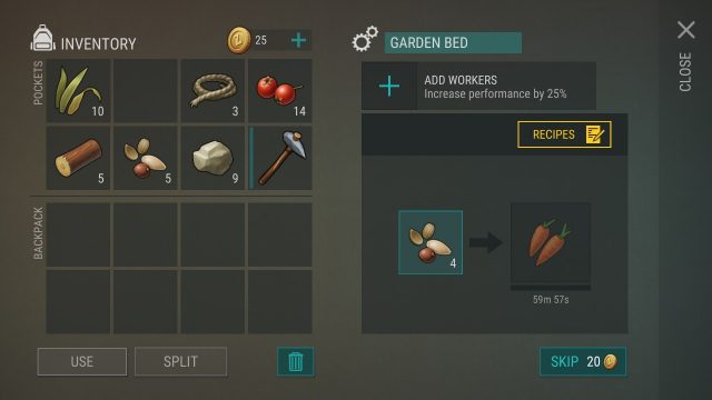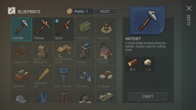 ทุกครั้งที่ LV UP จะได้รับแต้มสกิลนำไปปลดล็อคการสร้างอุปกรณ์ในปุ่มเครื่องมือได้ โดยปลดล็อคพวกอาวุธ และพวกทำอาหารเพื่อความอยู่รอดก่อน