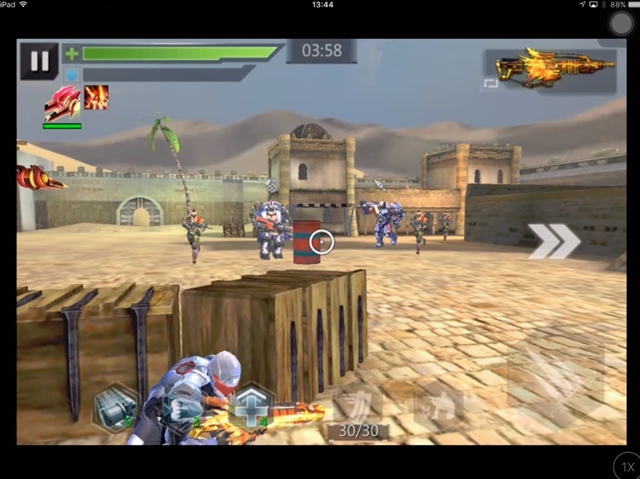 นอกจากนี้ ตัวเกมนั้นมีระบบเกมเพลย์ที่ง่ายมาก คือทั้งการขยับ ความไวในการหลบและรีโหลดกระสุนนั้นทำออกมาได้ไหลลื่นและไม่มีติดขัด อาจจะรู้สึกยุ่งยากนิดตรงที่ว่าปุ่มที่จะต้องไปกดนั้นมันอำนวยความสะดวกให้กับคนใช้ไอโฟนไปนิดนึง (คือปุ่มมันไม่ได้วางใกล้ๆ กับปุ่มยิง) ทำให้คนที่ใช้ Ipad เล่นอาจจะรู้สึกยุ่งยากไปนิดนึง แต่ด้วยการที่มันเป็นเกมแนว TPS เลยทำให้ปุ่มกดนั้นไม่ได้วางเรียงๆ กันเยอะๆ และนั่นก็ทำให้ตัดประเด็นว่าเผลอไปโดนอีกปุ่มโดยไม่ตั้งใจได้เลย