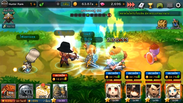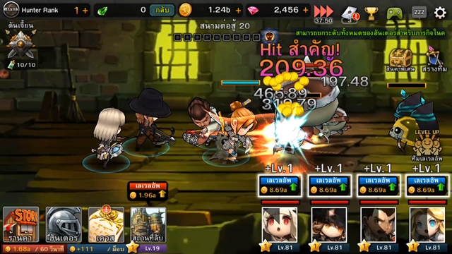 ตัวละครในเกมนั้นจะวิ่งไปสู้กับมอนสเตอร์เองโดยที่คนเล่นไม่ต้องทำอะไรเลยครับ สิ่งที่คนเล่นจะต้องคอยดูก็คือ ตัวละครในทีมเราไปซัดกับศัตรูไหวรึเปล่า โดยหากกรณีที่ไหวก็ต้องปั้มเลเวล ซึ่งการปั้มเลเวลเกมนี้คนเล่นจะต้องกดปั้มเลเวลเอง โดยจะใช้เงินที่จะได้จากการดรอปเนี่ยแหละเอามาปั้มเลเวล