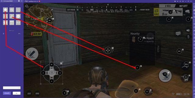 (3) ปุ่มกด ให้เราวางได้ตามใจชอบ เช่น ปุ่มกระโดด , ก้ม , หมอบ , กดเปลี่ยนอาวุธ , เปิดกระเป๋า , แผนที่ ฯลฯ คนเล่นสามารถวางปุ่มได้อิสระแล้วแต่เลยว่าคนเล่นถนัดปุ่มไหน