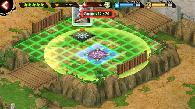 ระบบการบุกฝ่าค่ายกลนี้ไม่ได้มีแต่ในโหมด PVE เนื้อเรื่องอย่างเดียว แต่ก็ยังเป็นในโหมดบุกและป้องกันหมู่บ้านด้วย จำได้นะครับที่เราบอกว่าเกมนี้จะมีระบบพัฒนาเมือง คนเล่นจะสามารถพัฒนาเมืองได้โดยการเล่นตามเนื้อเรื่องเพื่อปลดล็อคให้เราอัพเลเวลสถานที่ต่างๆ และเก็บสะสมเหรียญเพื่อนำมาเป็นค่าใช้จ่ายในการอัพเกรด กรณีที่ทรัพยากรเราไม่พอ ก็สามารถไปบุกหมู่บ้านคนเล่นคนอื่น (ที่เกมจะสุ่มหาหมู่บ้านที่มีค่าสเตตัสใกล้เคียงกับเรา) โดยการบุกฝ่าค่ายกลของคนเล่นคนอื่นนั่นเอง กรณีชนะก็จะได้ทรัพยากรมา
