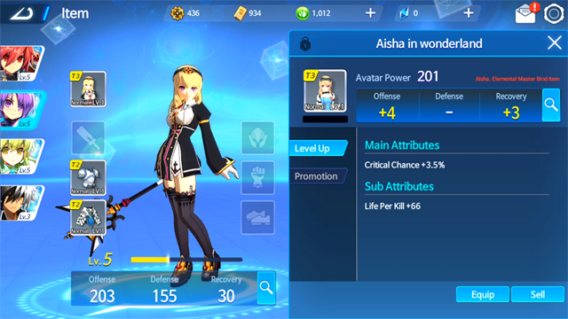 นอกจากนี้เกมยังมีระบบใหม่ที่แตกต่างจากเกมอื่น นั่นก็คือคอสตูม Avatar ที่ไม่ได้แค่เปลี่ยนรูปร่างหน้าตาตัวละครให้แตกต่างจากเดิมอย่างเดียว แต่ชุด Avatar นั้นจะแบ่งเป็นเกรดเหมือนกับอุปกรณ์และอาวุธปกติ แถมยังบวกสเตตัสด้วย ซึ่งความน่าสนใจก็คือ เกมนี้มี Avatar ให้สะสมเป็นร้อยๆ ชุด แถมหลายชุดก็ปลดล็อคหรือได้จากการเล่นในเกมปกติ รวมไปถึงเอาไปคราฟต์ด้วย ทำให้เกมนี้ไม่ได้เน้นที่ตัวละคร (เพราะเห็นว่าน่าจะมีให้เล่น 6 ตัว ตอนนี้มีให้เล่นก่อน 4 ตัว) แต่เน้นให้คนเล่นไปสะสม Avatar มากกว่า แต่แน่นอนว่าเรื่องของอาวุธและชุดสวมใส่ก็ยังจำเป็นที่ต้องติดให้ตัวละครอยู่เหมือนดั่งเช่นเกม RPG ทั่วไป