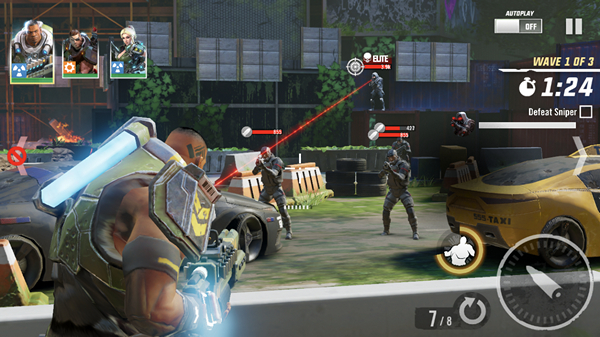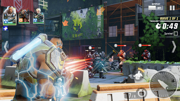 แต่แบบนี้ก็อย่าเพิ่งรีบคิดว่าตัวเกมส์จะออกมาแบบออโต้แล้วให้เรากดสกิล แต่ระบบการเล่นจะเหมือนกับเกมส์แนว Shooting บนมือถือที่เคยเป็นที่นิยมในบ้านเรา โดยเราจะสามารถวิ่งหลบ แอบหลังที่กำบัง บังคับตัวละครยิงต่อสู้กับศัตรู แถมยังสามารถเปลี่ยนตัวละครในระหว่างต่อสู้เพื่อให้ได้มุมที่ดีขึ้นหรือใช้สกิลตามสถานการณ์ โดยโหมดการเล่นนั้นจะมีทั้งแบบต่อสู้กับ AI, PVP และ Co-Op ร่วมทีมกันล่าบอส เรียกได้ว่ามีให้มันส์กันครบรส ใครชอบแนวไหนก็ลุยตามแนวที่ตัวเองชื่นชอบกันได้เลย