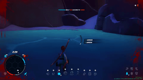 ระบบการเล่นของเกมนั้นต้องบอกว่าทำออกมาได้ง่ายเลยล่ะครับ คนเล่นจะสามารถยิงระยะไกลด้วยธนูและวิ่งเข้าไปเอาขวานฟาดก็ได้ แต่ไม่ใช่ว่าเอาขวานฟาดแล้วจะตายทันทีเพราะเกมจะดีดตัวคนเล่นกระเด็นเพื่อให้คนเล่นหาทางตั้งสมาธิหรือหาทางรับมือได้ ตัวเกมยังมีวิธีการฆ่าอื่นๆ เช่น ยิงเห็ด (มั้ง) ใกล้ๆ ที่จะเกิดคลื่นระเบิดทำให้อีกฝ่ายกระเด็นดีดตกลาวาตายก็ได้ (โดนฆ่ามาแบบนี้จริงๆ) ซึ่งทำให้เกมสามารถพลิกแพลงการเล่นได้เรื่อยๆ