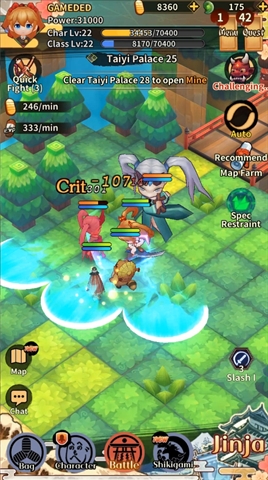 วิธีการอัพเกรดตัวละครให้แข็งแกร่งนั้นจะมีสองวิธี นั่นก็คืออัพเลเวลตามปกติ และการอัพเกรดอุปกรณ์สวมใส่ โดยเกมนี้คนเล่นจะสามารถอัพเกรดอุปกรณ์สวมใส่ให้เป็นเกรดที่ดีกว่าได้ ซึ่งความแตกต่างจากเกม IDLE เกมอื่นก็คือ คนเล่นจะสามารถไปล่าหาของเพื่อเอามาอัพเกรดอุปกรณืได้ด้วย นอกจากนี้เกมจะมีระบบคู่หูที่จะเป็นเหล่าชิกิงามิ (ภูติผีญี่ปุ่น) มาช่วยเราโจมตีอีกด้วย โดยจะสามารถปลดล็อคเอามาเป็นคู่หูได้ถึง 6 ตัวสูงสุดเลยทีเดียว