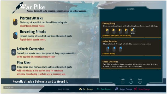 คลิกซ้าย : แทง (x4 คอมโบ+คลิกซ้ายค้าง) สร้างความเสียหายแบบ Would ทำให้เกิดบาดแผลง่ายขึ้น