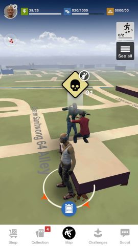 แต่เราจะต้องเดินทางไปค้นหาผู้รอดชีวิตในสถานที่ต่างๆ โดยดูจาก GPS ในเกมจะเห็นรูปคนโดน Walker ทำร้ายอยู่ ให้แตะไปที่จุดนั้น(ต้องอยู่ในระยะร้อยเมตรจึงเข้าไปช่วยได้) ก็จะเริ่มการต่อสู้ ซึ่งจะต้องเตรียมอาวุธอะไรต่างๆให้พร้อมเสียก่อน