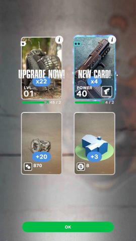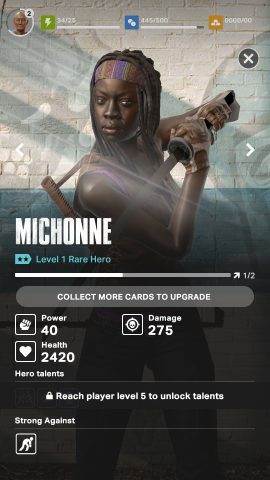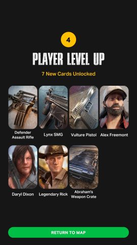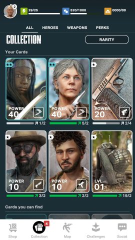 การอัพเกรดอาวุธต่างๆจะมาจากการเก็บการ์ด ที่ได้เป็นรางวัลจากการส่งผู้รอดชีวิตที่เชลเตอร์ หรือเอาชนะกลุ่ม Walker ได้ มาอัพเกรดที่ Collection การอัพเกรดจะขึ้นอยู่กับจำนวนการ์ดซ้ำที่เก็บได้ ยิ่งอัพเกรดก็จะยิ่งใช้การ์ดมากขึ้น การอัพเกรดทำได้ตั้งแต่ อาวุธ ตัวละครคู่หู หรืออุปกรณ์ช่วยเหลือต่างๆเช่น Abraham’s Weapon (กระเป๋าเก็บอาวุธ) , Dale’s RV (รถขนผู้รอดชีวิต) ,Morgan’s go bag (กระเป๋าเก็บเหรียญเงิน) ซึ่งจะช่วยอำนวยความสะดวกเราต่างๆ