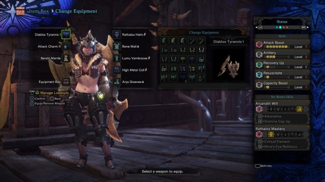 | Artillery | เพิ่มความแรงของระเบิดบางประเภท เช่น กระสุน Gunlance และท่าชาร์จยิง , กระสุนsticky ammo | 3 |