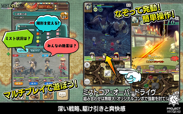 สำหรับตัว Project Mist Gears ในเวอร์ชั่นเกมส์มือถือจะมาในรูปแบบของ JRPG ในโลกที่เกิดหมอกปริศนาเกิดขึ้นทั่วโลก ซึ่งหมอกเหล่านี้สร้างความเปลี่ยนแปลงอย่างมาก โดยเฉพาะเหล่ามอนส์เตอร์ที่เมื่อถูกหมอกเหล่านี้จะมีการพัฒนาขึ้น ดุร้ายมากขึ้น แข็งแกร่งขึ้น โดยเหล่าผู้เล่นจะต้องออกสำรวจไปทั่วโลกซึ่งเราจะต้อง ร่วมทีมกับผู้เล่นเป็นปาร์ตี้ 4 คน เข้าไปลุยกับมอนส์เตอร์สุดดุร้าย โดยนักผจญภัยเองก็จะใช้ อาวุธพิเศษ ที่ถูกสร้างขึ้นมาโดยการนำพลังของหมอกมาเป็นตัวเสริมความแข็งแกร่งให้กับอาวุธ แต่ก็น่าเสียดายที่ตอนนี้ยังไม่มีการเปิดเผยรายละเอียดของตัวเกมส์ออกมาให้เรารู้มากนัก แต่จากภาพตัวอย่างแรกที่ปล่อยมาให้เราได้เห็นกันก็เดาได้เลยว่าตัวเกมส์จะออกมาน่าเล่นมากทีเดียว ซึ่งทางทีมพัฒนามีกำหนด จะเปิดให้บริการในประเทศญี่ปุ่นก่อนสิ้นปีนี้ เตรียมรอกันได้เลย