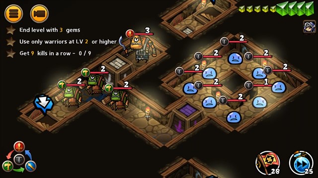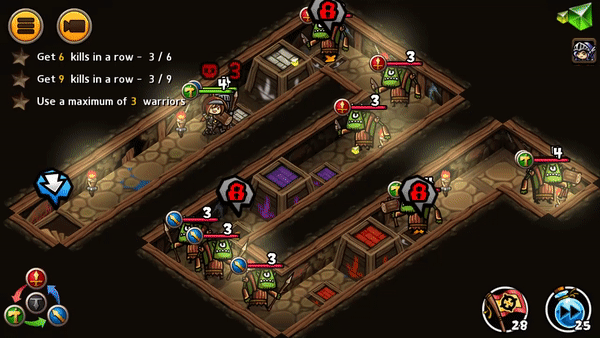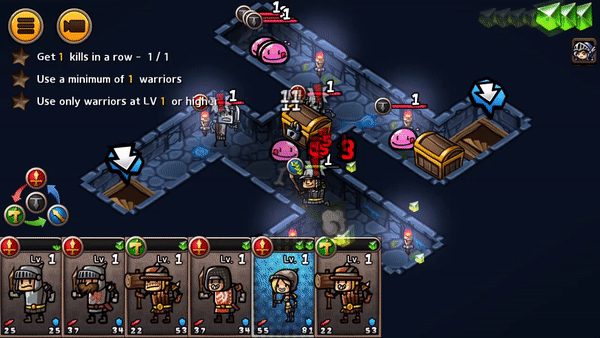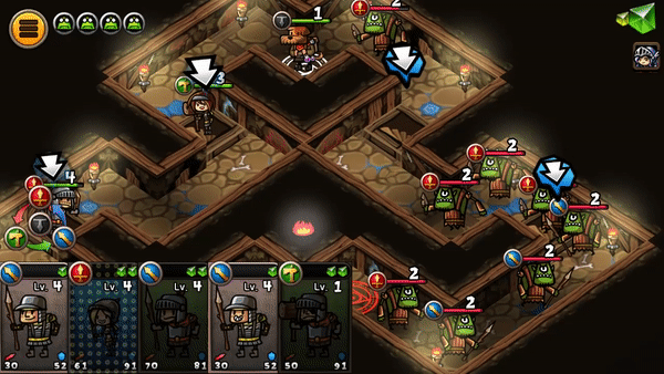 นอกจากนี้ คนเล่นยังสามารถกำหนดจุดที่จะให้ตัวละครในทีมเราวิ่งไปยังจุดที่เราต้องการได้ด้วย (ไม่อย่างนั้นตัวละครจะวิ่งมั่ว) ด้วยจุดประสงค์ที่คนเล่นต้องการ เช่น วิ่งไปเก็บหีบสมบัติก่อนที่จะวิ่งไปตบมอนสเตอร์ (เพราะเกมนี้ถ้ามอนสเตอร์ตายหมด เกมก็จะจบทันที) ซึ่งเงื่อนไขในการได้ 3 ดาวในแต่ละด่านนั้นก็จะไม่เหมือนกัน แต่นั่นคือความท้าทายของคนเล่นว่าคนเล่นจะวางแผนอย่างไรเพื่อส่งให้ลูกทีมตัวเองเก็บเงื่อนไขให้ครบนั่นเอง